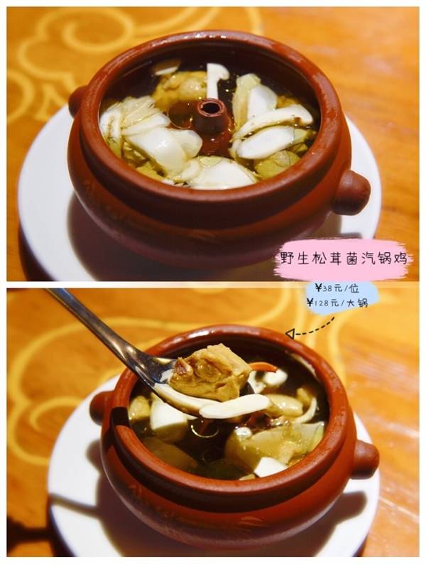 🍲野生松茸菌汽锅鸡:松茸新鲜,鸡肉滑嫩,汤汁鲜美,虽然点了小份,但是料超足,里面还有竹笙、香菇、鹌鹑蛋等,来上一盅真的是超滋补~