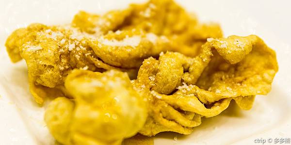 「脆皮虾皇饺」鲜嫩的虾饺炸过后,表皮香酥,口感很特别,整盘都想自己独食!