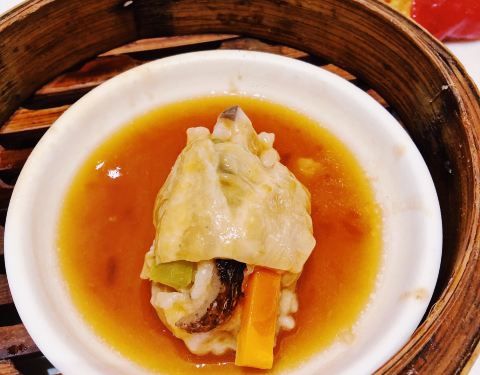 作为一个有执念的吃货宝宝,种下必吃榜的草就必须及时拔掉,前一晚完美错过的午市点心,第二天中午必须重新来过…… 同事心疼我最近憔悴了许多,特意让我多吃点胶原蛋白补一补,鲍鱼汁焖凤爪和烧汁猪手当真是极好...作为一个有执念的吃货宝宝,种下必吃榜的草就必须及时拔掉,前一晚完美错过的午市点心,第二天中午必须重新来过…… 同事心疼我最近憔悴了许多,特意让我多吃点胶原蛋白补一补,鲍鱼汁焖凤爪和烧汁猪手当真是极好的炖至酥烂入味鲜香四溢令我爱不释手 ❤️百花红米肠❤️金沙虾仁粒粒分明,却不够硕大饱满,论及口感不及同类茶楼出品那么美味,反倒被货真价实的杨枝甘露惊艳味蕾,扑满扑满的芒果红柚令我一本满足。 姗姗来迟的五福临门将人气点心一网打尽,香喷喷流沙包➕晶莹鲜虾饺➕蟹籽烧卖皇➕竹笙上素粉果➕香橙千层糕各1件,各取所需各得所爱。 招牌水果茶和金研凤梨乌龙茶可以说是金童玉女般的颜值担当,新鲜果肉搭配清爽冰镇茶饮,入口沁人心脾还能恰到好处解腻。