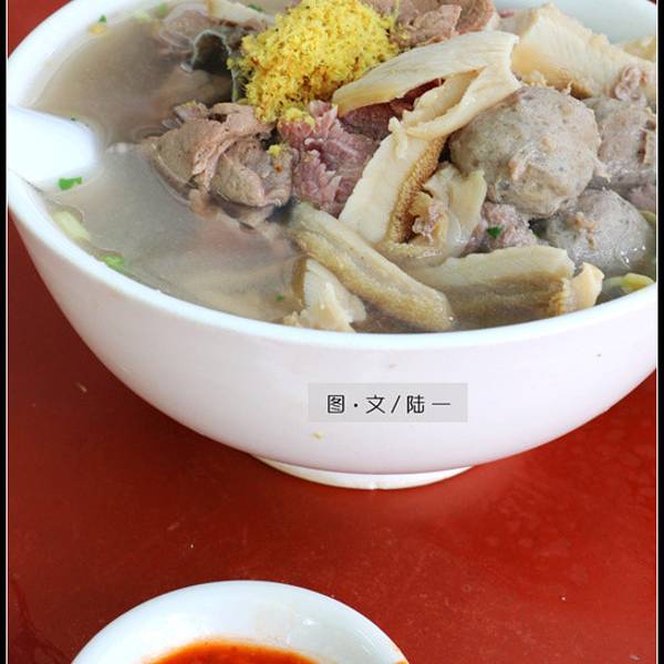 牛杂分为15/20/25三个价位,一般来说小碗15元的量就很多了。牛杂下面加上了粿条,配上辣酱,放入嘴中,鲜香可口,保留了牛肉最纯真的肉香,再加上蒜泥,异常美味。牛杂汤里还有牛肉丸,蛮有嚼劲,味道并不比汕头...