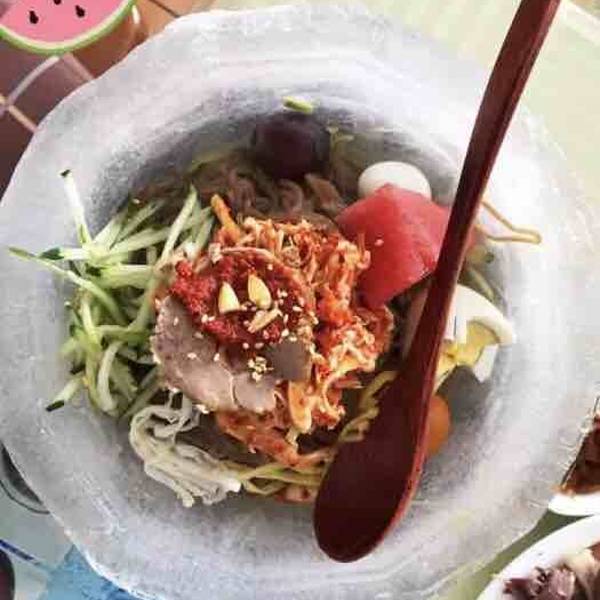 ✨冰碗冷面 38一碗,没有网红的日本冰碗那么美,是个粗旷版的ಠ_ಠ,好大一只冰碗,也没说特别的好吃!就是体验一下吧,冰冰凉透心亮,大热天的看着就爽!建议2个人点一碗就好,份量还是很大的!或者点普通冷面就...