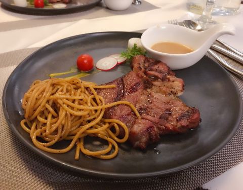 牛扒煎的不错,我吃的七成熟,但是感觉像是九成熟了,喜欢黑椒汁的味道,吃不惯蘑菇汁,下次不要蘑菇汁了,茄汁也不错,餐厅氛围很好,很适合两个人约会,聊天什么的都比较安静,因为店里搞活动的时候去的,套餐很优惠,服务态度好