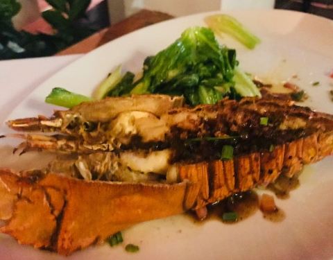 - ...,要了一个龙虾,烤的有点点老,那个不认识的海鱼味道不错,就是长的有点点丑了,这里的海滩比较原始