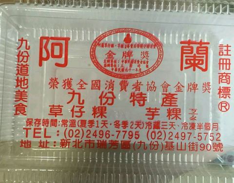 - 阿兰草仔粿店在九份老街,有零卖的,很适合我这种独游想尝鲜的情况。有甜的咸的好几种口味可以选
