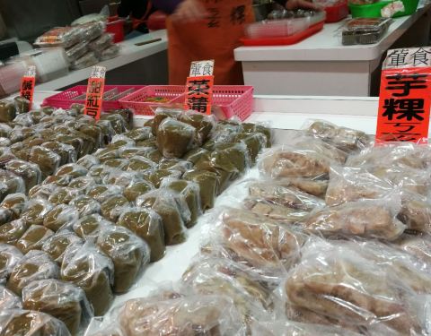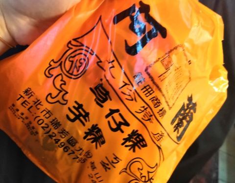 卖草仔稞的店,旁边有现场表演制作,刚出炉的挺热乎。里面是红豆馅的,外面裹的应该是黄豆粉。其实感觉就是驴打滚。味道还不错。