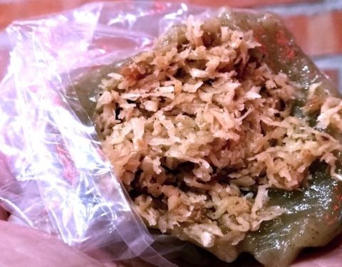 台湾以阿兰阿珠阿珠命名的真多,作为国民小吃,阿兰草仔粿也十分受当地人的喜爱。草仔粿都是刚做好的,拿到手上还热乎着,有红豆、咸绿豆、菜蒲米、咸菜等品种,不仅好吃还便宜,只要10元一个。