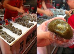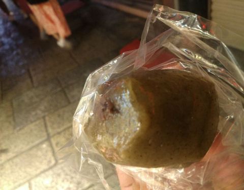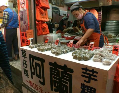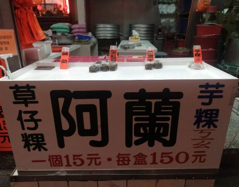 卖草仔饼的店,旁边有现场表演制作,刚出炉的挺热乎。里面是红豆馅的,外面裹的应该是黄豆粉。其实感觉就是驴打滚。味道还不错。