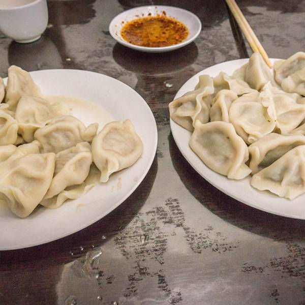 差不多到了晚饭时间,寻觅好吃的。 曲阳最著名的饮食可能就是这个黑闺女饺子了,还是省级非遗呢。 据说,黑闺女饺子是明朝御膳名食,饺子馅由十几味中草药材精心配制,不过吃起来的时候,真是没吃出中药味儿。