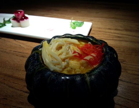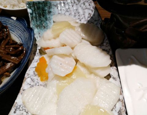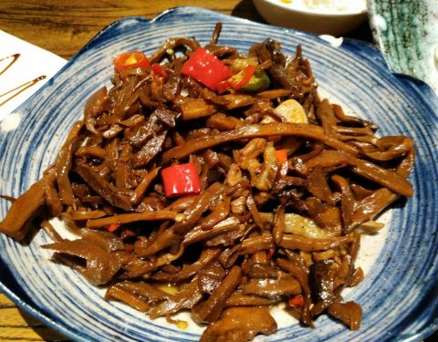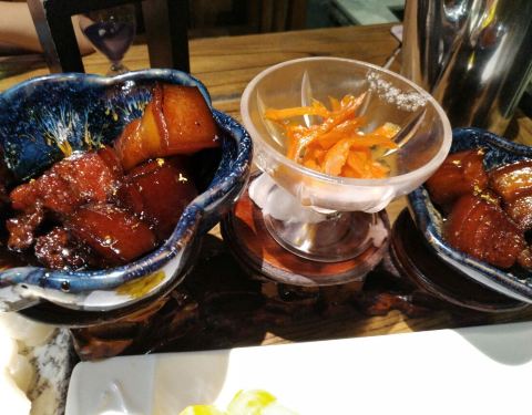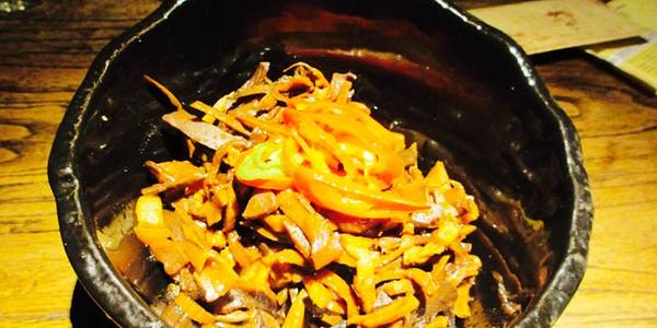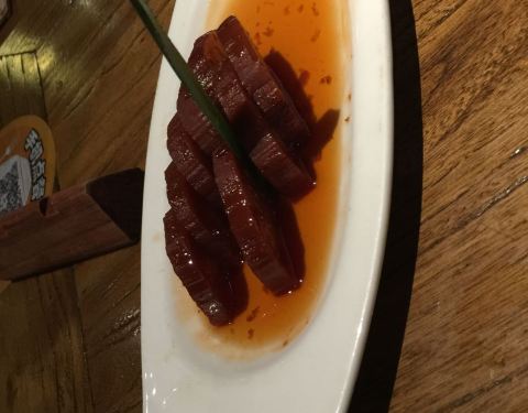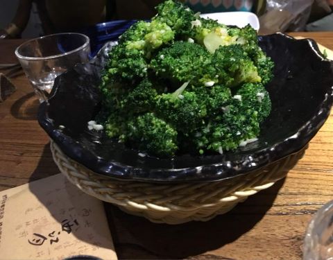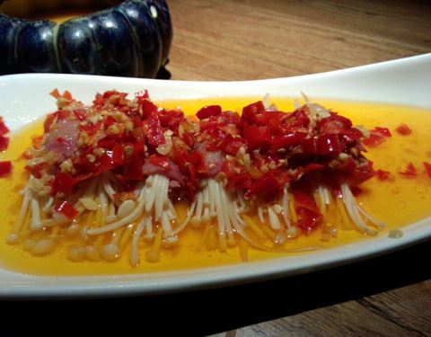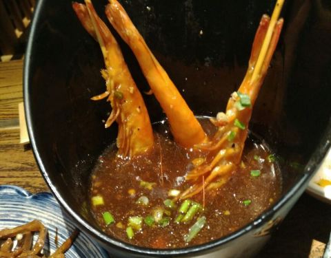 我们算是过了饭点去的,中午一点才去的,进去之后,环境不错,上菜还算速度,就是份量有点小,只有烤鱼份量足点,不过也贵,要58元一份,点的培根,没想到其实是培根金针菇卷,有点重复了
