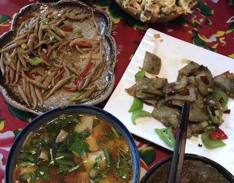 山里人家,是山西五台山风景区内一家餐馆,经营的都是农家菜以及当地特色面食,比如农家烩菜、过油肉、栲栳栳和刀削面等等。菜的口味偏咸,也偏油,垫垫饥还是可以的。