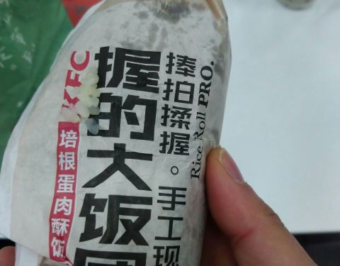 赶上肯德基的培根蛋肉酥饭团买一送一,正好圣诞假期,就去买来尝一尝。实际性价比高的,一共有两片培根,鸡蛋,肉松,脆油条,黄瓜,小小的饭团倒是包含了好多啊,口味很好,很喜欢吃。