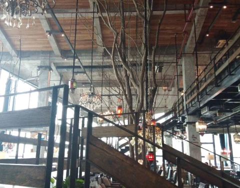 目前长沙有两家漫咖啡,一家在浏阳河婚庆园附近,一家在湘江世纪城,萝卜觉得漫咖啡是长沙最有情调最浪漫的咖啡店。淡黄色的光照亮着以木质材质为主的咖啡馆,让人觉得暖暖的。进店点单付款后,店员会给你一只可爱的小熊,拿着这小熊选择一个合适的位置坐下,安心等待。环顾四周你会发现整个咖啡店的布局给人一种温馨的感觉,整个咖啡店以深色调为主,除了几盏主灯,其他灯光都是橘黄色或淡黄色,木质的座椅加上柔软的靠垫让人踏实。进店的左手边一面墙改造成的书架,上面摆放着各种书籍,虽然是装饰品,但给整个环境增添了一丝文艺。 屋顶上盘旋着工厂式的管道,墙壁像铺着不够均匀的水泥,但室内又有林林总总的树干,桌子用的是回收的旧木板。屋顶上高低不齐地吊下来各式水晶灯,每盏都离桌子很近,所以即便整体空间很大,只因为一盏灯,也就瞬间有了私密感。两层楼的设计让整个咖啡店很空旷,让店内喝咖啡的人能够面对面的畅所欲言。这家店很注重细节,就连洗手间的马桶都是电动更换一次性马桶坐垫。只要看到烟灰缸里有烟头服务员就会过来更换。注意事项:漫咖啡外的马路边禁止停车,就算路边上停满了也别停,萝卜就因为停路边被抄牌。吃喝推荐:华夫饼、火腿三明治、芒果冰淇淋、摩卡咖啡。