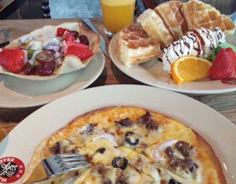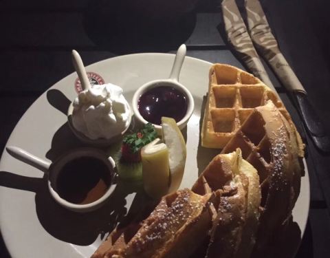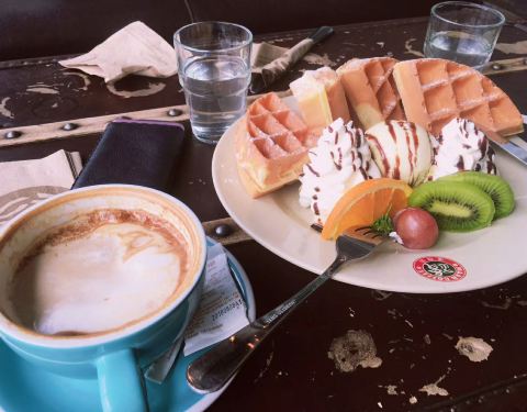 吃喝推荐:华夫饼、火腿三明治、芒果冰淇淋、摩卡咖啡。只要看到烟灰缸里有烟头服务员就会过来更换