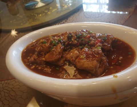 毛豆腐,绩溪炒粉丝等知名徽菜味道很地道。面积很大,古典式装修比较讲究,环境还可以