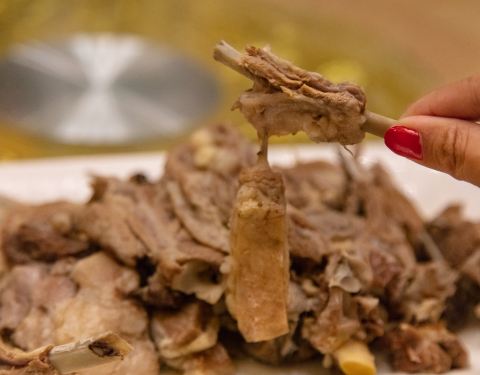 - 还是这家的烤肉比较好吃,这里有烤羊排,烤羊腿,烤羊蹄,还有烤羊肚,不过,真的没吃过烤羊肚,办知...