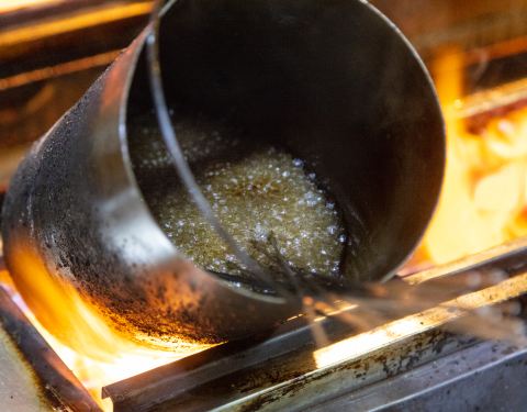 在我印象中,烤肉店的环境一直都是“苍蝇馆子”的形象,油腻腻的桌面和地面,空气里也是弥漫着油烟味。但是这家店,环境别具一格,除了干净卫生,还布置了当地特色“嘉峪关关城”和“飞天”的装饰画,除了有大厅的软凳雅座,还有格调高雅的包厢,完全看不出这是吃烤肉的地方。 厨师说他们用的是生长在祁连山脉的祁连冰川羊,体型小、繁殖率低,但它们却是羊中极品。一般来说,春节后出生的小羊,经过6-8个月的生长,体重达到10-15公斤时肉质最佳。羊肉鲜嫩多汁,无膻味,肉层厚实紧凑,高蛋白、低脂肪、瘦肉率高,肌间脂肪分布均匀。 我们看到厨师在处理羊的时候,刀法精细,羊肉和羊骨都剔除的非常干净,没有一点浪费。串肉的时候也很讲究,两瘦一肥,听说这样吃起来口感更好。 眼镜烤肉串和我之前吃的烤肉做法不同,我们发现在烤炉边上放有一个小桶,里面也是被烤的沸腾的热油,厨师先将羊肉在路上烤到表面稍稍变色,然后就马上将肉串放入热油桶中涮两下,感觉就像在油炸,之后再将肉串放回炉上飞快的在炭火上滚动着,最后撒上孜然、辣椒等调味料。 这样做出来的烤肉,不仅不油腻,没有羊膻味,而且肉汁饱满,咬一口唇齿留香。