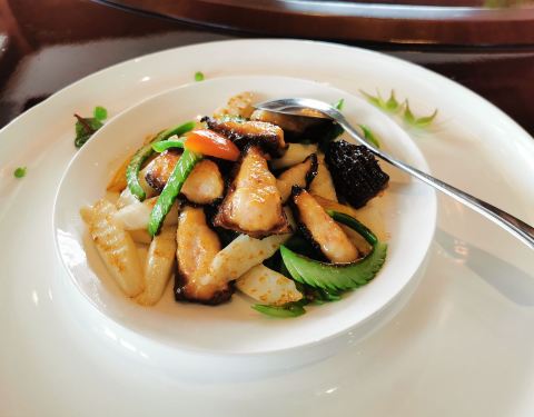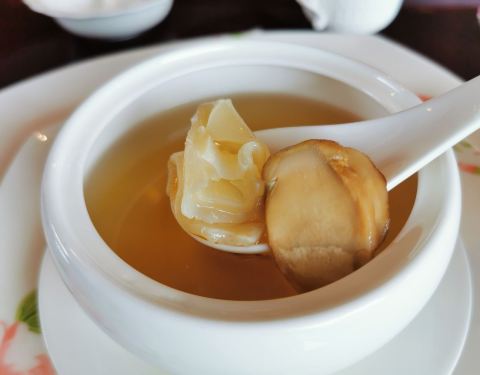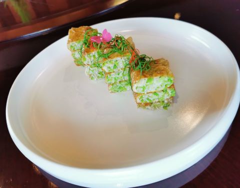 蟹粉汤包和蟹粉鸡头米都很腥,河豚鱼有点烧太甜了,松茸汤中只有2片松茸。最好吃的是火腿小豌豆和杨枝甘露