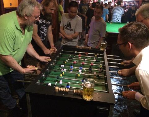 An ideal place for the party,老外激烈的桌球比赛