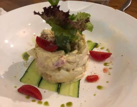 一家很正宗的西餐厅,团购了双人餐,土豆沙拉造型不错,味道也很棒,牛油果虾卷味道稍微有点淡,但是...