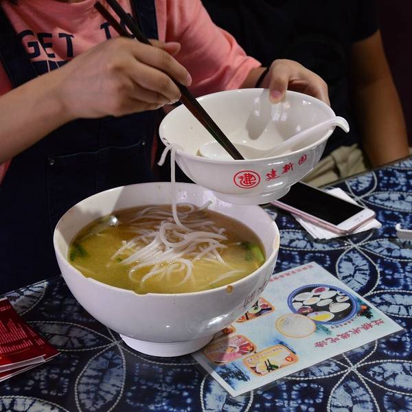 - 建新园的过桥米线就这么低调被端上来了,既没有想象中的火锅,也没有期待的气泡翻滚