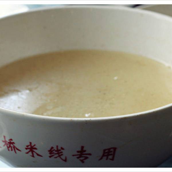 过桥米线柔韧爽滑,像小桥流水的温柔细腻,对得起它的盛名。