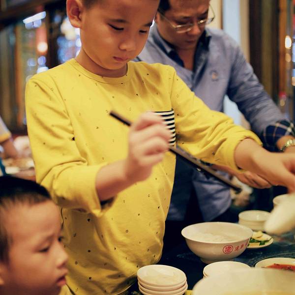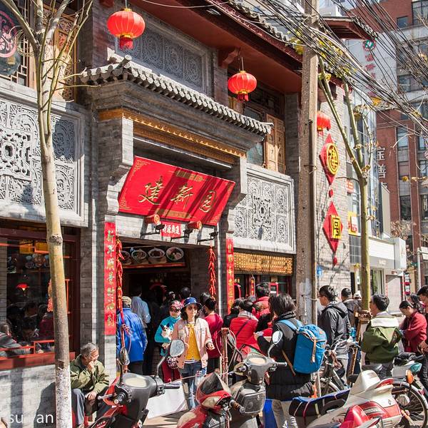 小红椒带着两岁的齐宝亮相,太可爱了(๑´ڡ`๑)小红椒吃的这种是肉沫焖米线,就是大锅里烫熟的米线,捞起落碗,浇上肉沫肉和汤汁,自己搅拌开吃。也好吃呢(°﹃°)~因为大家都狼吞虎咽,风卷残云之后忘了拍铺面照,又在下雨,队伍拉的太长不想折回去了。远远拍一张吧。百年老字号宝善街建新园就是上图中门前挂一排红灯笼的老房子。为了不让你们说我懒,附上地图一张~