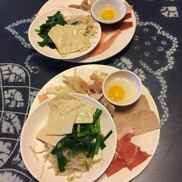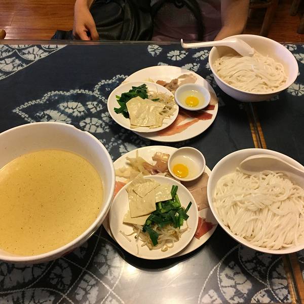 - 好好吃,这就是地道的云南过桥米线!看看这个大合影,米线还未上,先上配菜,这样装着也赏心悦目。要趁热喝