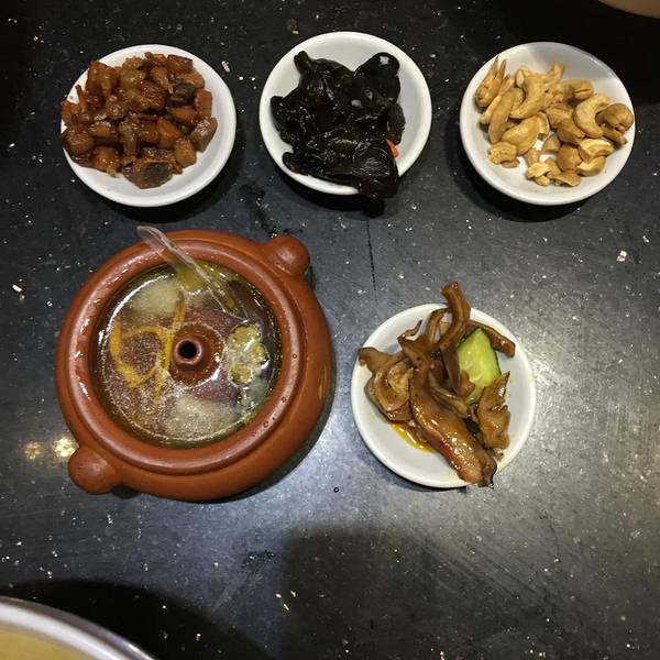 精致的鹌鹑蛋和几片肉,完全是生的,正在思索着该怎么吃,服务员把一大碗泛着油偶尔冒着泡的汤也端了上来。“先放肉和调料,...建新园的过桥米线就这么低调被端上来了,既没有想象中的火锅,也没有期待的气泡翻滚。