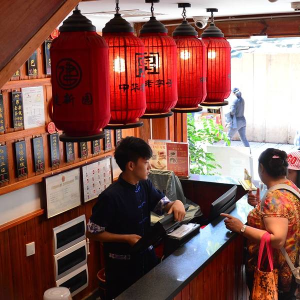 这个就是宝善街的建新园老店,昆明当地人都来这吃,在外面点完餐,进去把小票给服务员,自己找地方坐下,服务员就会给你端过来,坐我们旁边的就是一对老年夫妇,他们说每周都会过来吃一次!从步行街走到这家店差...这个就是宝善街的建新园老店,昆明当地人都来这吃,在外面点完餐,进去把小票给服务员,自己找地方坐下,服务员就会给你端过来,坐我们旁边的就是一对老年夫妇,他们说每周都会过来吃一次!从步行街走到这家店差不多也就10分钟,特别近,昆明的路标很清晰,街道的字都写的很清楚,即使找不到问问周围的当地人,都会热情的告诉你。