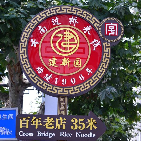 这个就是宝善街的建新园老店,昆明当地人都来这吃,在外面点完餐,进去把小票给服务员,自己找地方坐下,服务员就会给你端过来,坐我们旁边的就是一对老年夫妇,他们说每周都会过来吃一次!从步行街走到这家店差不多也就10分钟,特别近,昆明的路标很清晰,街道的字都写的很清楚,即使找不到问问周围的当地人,都会热情的告诉你。