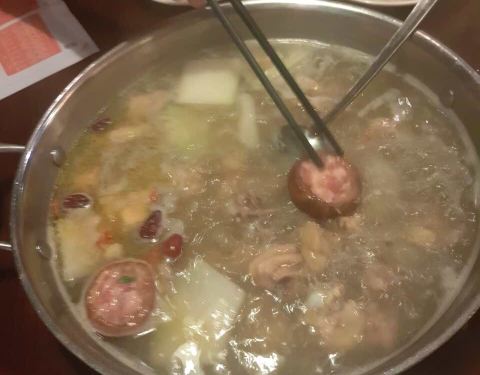 很清淡,很特别的火锅,又能喝鸡汤又能当火锅吃,不错不错。
