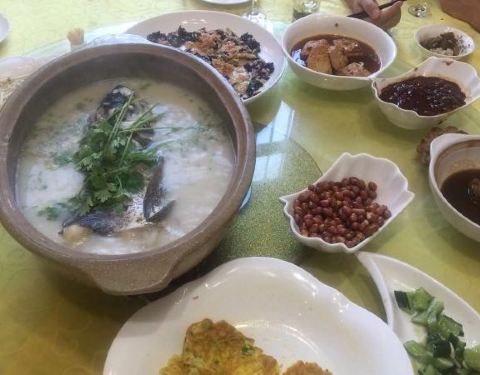2、菜品种类不少,菜单如下:天目湖鱼头汤,白芹 ,乌米饭香瓜,盐水河虾,鱼头汤,小笋老菜肉丝,龙凤汤