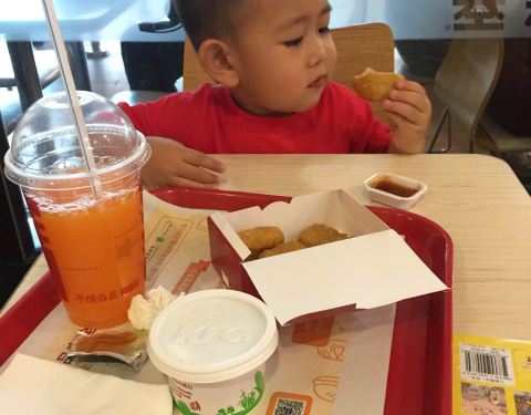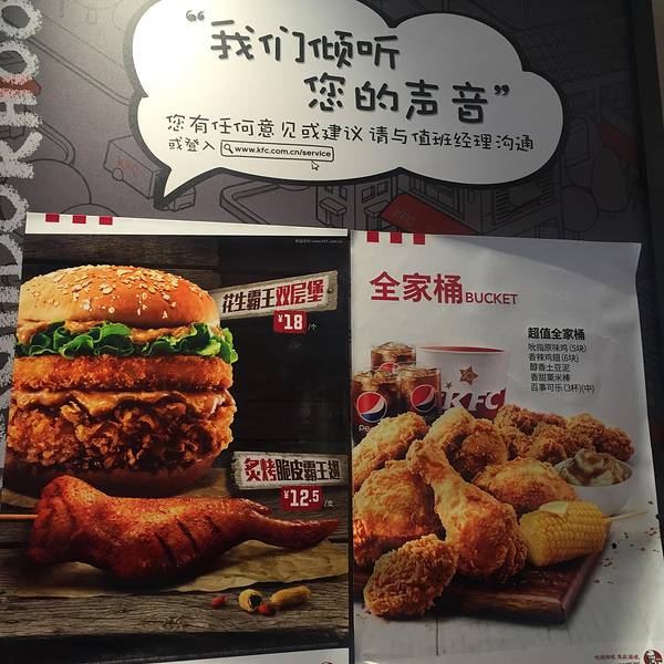 【位置】位于北京市房山区,位置不是很方便,坐公交车和地铁都是非常不便利的,开车前往比较方便,一般来这里吃饭的人都是附近的居民,因为附近没有什么景区,所以外来的人不是很多。 【环境】这家肯定的自身的环境其实还是不错的,但是周边比较杂乱,附近也没有竞争对手麦当劳,所以周末的时候来这里的人很多,而且以孩子居多,整个餐厅显得非常混乱和吵闹,尤其周末高峰的时候,点餐的时候都要很大声,用餐的时候周边也一直是孩子的喊叫声,所以比较乱,点餐的时候因为人多,服务员建议用手机点餐,但是手机点餐没有取餐条,很多后面点餐的人都取完餐了,但是手机点餐的还没有配餐,沟通的时候也很乱,很多人都是用喊的。 【服务】这家店来过几次,可能每次都赶上高峰,服务员的态度不太好,有的时候配错餐也是理直气壮的感觉,但是因为附近只有这么一家快餐店,所以有的时候没办法还是要选择他家,高峰时期找位置如果桌上有未清洁的东西,基本上就要自己收拾了。 【味道】肯德基的味道大体都差不多,今天尝了一个新出的双层堡,里面竟然有一层是薯饼,只能怪自己没有看清楚了, 不过蛋挞的味道还是一如既往的好吃,比较推荐。 【价格】肯德基的价格现在逐渐提高,人均消费在34元左右。