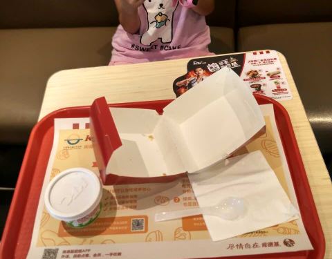 肯德基的味道就不说了,大体都一样,今天点了一个新品食双层包,一层竟然是薯饼,这家店人特别多,点餐慢,配餐更慢,而且服务员的态度特别不好,我们去的时候孩子比较多,所以显得餐厅很吵闹,虽然肯德基都差不多,不过这次真的觉得体验感很不好