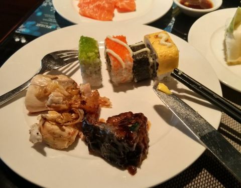 没有生蚝,没有龙虾!好在有三文鱼。三文鱼比较新鲜,烤羊腿也还不错。就是量少每次只给两片。环境不错,也不会太吵,东西都比较卫生。