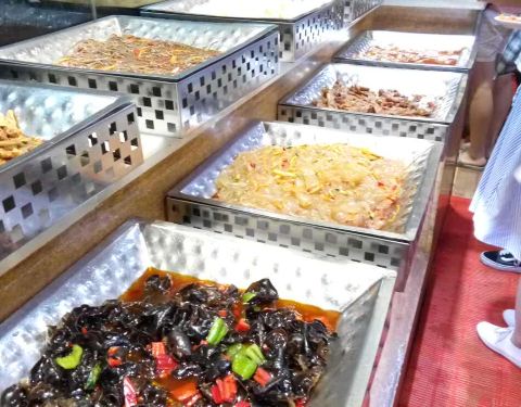 - ...重口味也就是甜辣型,还是可以接受的,自助段位调料,有粥有水果,餐食经常会补充,牛羊肉质量超级好