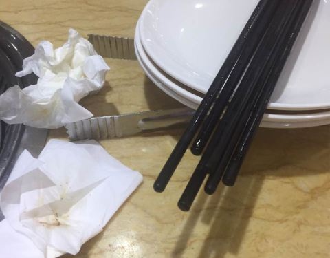 - 服务员送餐具的时候直接把烤肉用的夹子放在桌子上,而他们的桌子也没有擦干净,上面拿纸巾一擦哈是油...