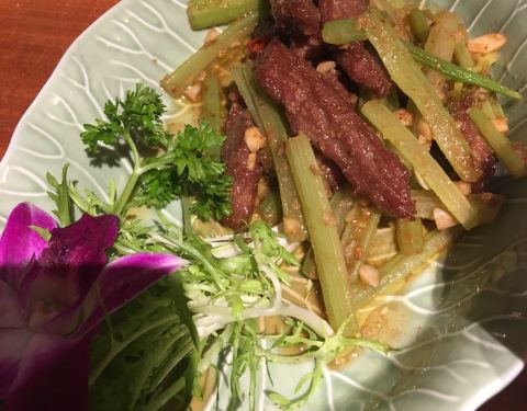 有段时间没来,上了些新菜,仔细看看价格,其实也跟蕉叶差不多了,早几年金胡椒还比蕉叶便宜些 蟹籽柚子沙律、香汁海参,2个都很不错的新菜,柚子沙拉非常清爽,海参也做的很好吃 红咖喱菠萝龙利鱼,咖喱系列的都不会失望,菠萝的酸甜煮到咖喱里,更好吃了,龙利鱼其实并不喜欢,放在这里也还好 金不换炒花蛤,花蛤没养出,有沙子,其他也没什么毛病 泰式沙茶小牛肉,比较一般吧,牛肉嫩肉粉处理过了 泰象啤酒,尝试下泰国啤酒,酒精度很低,这款啤酒很清爽,苦味也少,蛮不错
