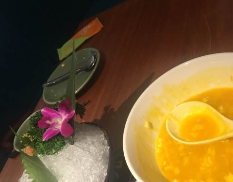 柚子沙拉非常清爽,海参也做的很好吃 红咖喱菠萝龙利鱼,咖喱系列的都不会失望,菠萝的酸甜煮到咖喱...