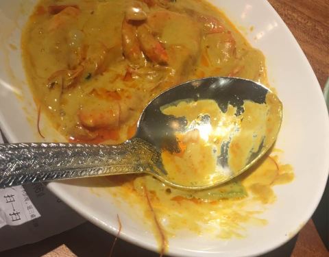 - 虾汤浇饭特别好吃。香草肉碎就没那么好吃。咖喱虾的味道很不错。柠檬鱼酸酸的味道不错。椰浆比较浓