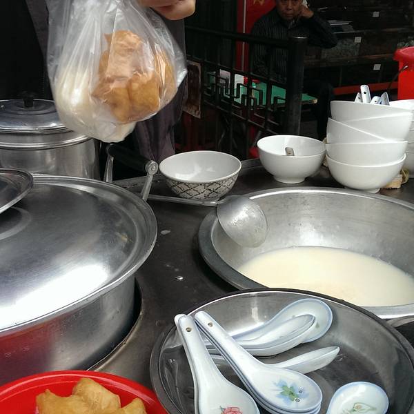 早餐在牌坊街的这家店吃。一大早的,整家店坐满了食客。 点了一份10元的肠粉,薄薄的蒸粉皮裹着切片的香菇,鸡蛋,肉碎和鸡丝。顾客们可以到门外自助取茶。 吃完肠粉上前去与老板娘聊天。当她知道我们从新加坡...