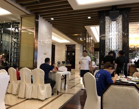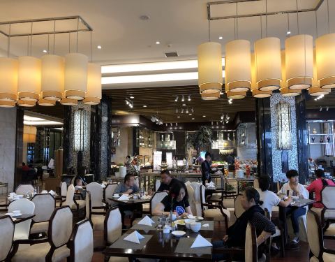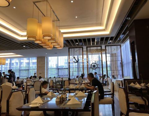 在日照岚桥锦江大酒店下榻,这里的自助早餐和会议招待都是在这个瑞泰西餐厅,餐厅很大,能容纳很多人,里面的自助餐样式挺多的,尤其是自助海鲜,非常不错。