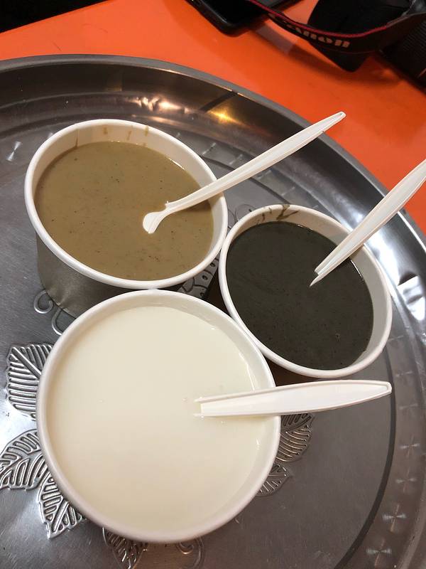 白芝麻茶,杏仁茶,黑芝麻茶。应该是没有➕糯米粉的。喝起来比老魏记更顺滑,不会太稠。白芝麻糊喝着能感觉到油油的,应该是料足,真的用芝麻磨的。杏仁茶也是甜多些,回味一点点🤏淡苦整体还都是挺甜的。