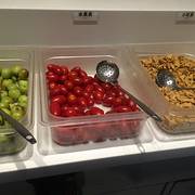 来的时候有点晚了,所以滑类拼盘没有了,点了份羊肉牛肉,羊肉整个是摆盘好从急冻里拿出来的,餐品比较一般,服务倒是蛮好的,一直有服务员在旁边帮忙倒饮料,然后小袋子装手机,水果随便吃,但是品种不多,就四五种。