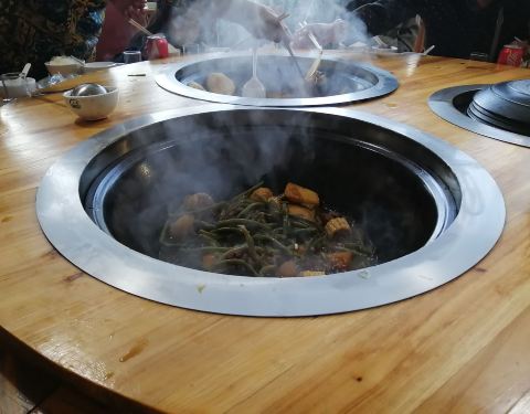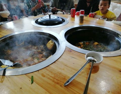 非常好的大铁锅,要了两个锅,大约15人,得到大家的一致肯定!!!大铁锅,要人越多,吃的越合适,可以往里面填菜!想吃什么都可以!!!