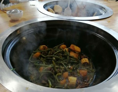 非常好的大铁锅,要了两个锅,大约15人,得到大家的一致肯定!想吃什么都可以