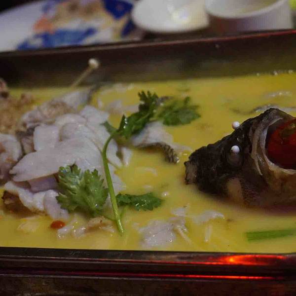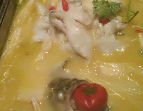 鱼羊鲜这道,鱼肉土腥气很重,不知道其中哪种调味料的问题,吃起来总觉得哪里不对。连带着一直喜欢的金针菇味道也变得怪怪的。