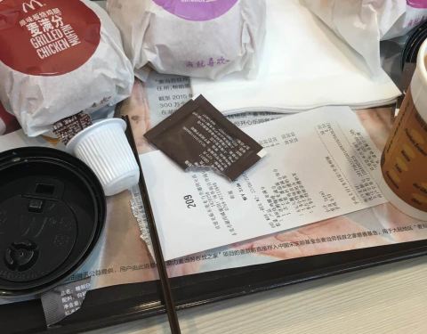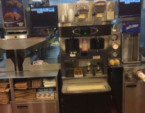 麦当劳是一个舒适的用餐。大脆鸡排。冰冻咖啡。