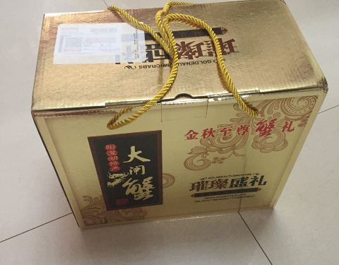 之前几年一直也去阳澄湖吃大闸蟹的。又到了阳澄湖大闸蟹最美味的季节了。各家各户莲花岛都有在出售的。开车过去一路上都好多家在路上有的。选了一家。包装上是金色的。里面配好三对。现在个头都比较大些。有小扣扣。送人感觉也挺有档次的。