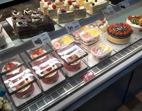店里的甜品都很好吃,面包品种也很多,女儿最喜欢买来当早饭吃。